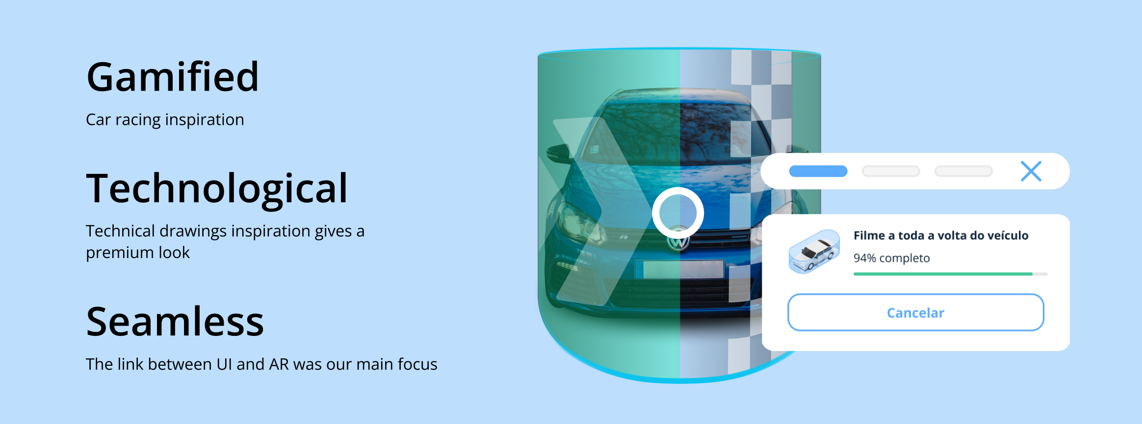 A gamification and technological feel would make the AR experience more recognizable and add a sense of achievement from the user’s perspective. For the photo inspection feature, we designed and analyzed different vehicle silhouettes using Origami Studio. The main challenge was finding an agnostic design that would work with different vehicle types and sizes. After researching, prototyping and testing, we were able to reach the optimal solution.